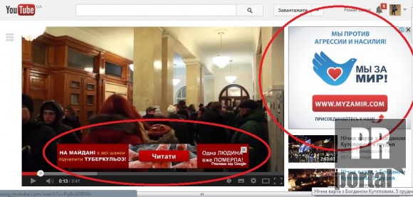 Банери розміщувалися на багатьох новинних сайтах, включаючи недавно прибраний Сім’єю до рук korrespondent.net, а також Vlasti.net.