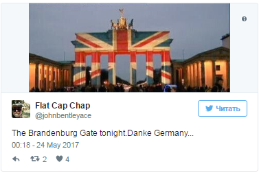 Також у ніч на середу, 24 травня, на Ейфелевій вежі в Парижі погасили вогні в пам'ять про загиблих і поранених в результаті теракту на стадіоні Манчестер Арена.