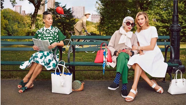 93-річна Айріс Апфель стала обличчям рекламної кампанії модного бренду Kate Spade.Нова промо-кампанія випущена на підтримку колекції аксесуарів весна-літо 2015.