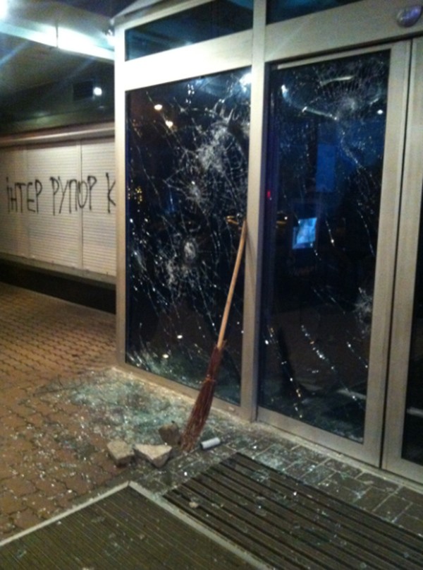 Вчера около 20 человек атаковали офис телеканала «Интер», разбиты стекла на входе, никто из сотрудников не пострадал,сообщает depo.ua