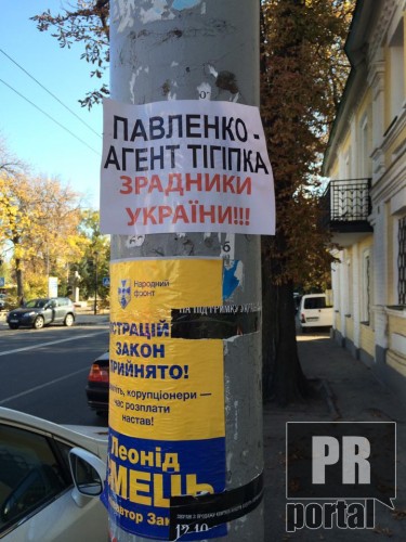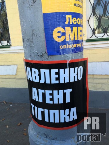 Как сообщал PRportal, билборды канидата от Блока Петра Порошенко Александры Павленко по 221-му округу заклеили наклейками "агент Тигипко".