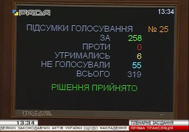 За основу за проект проголосували 258 депутатів,передає Українська правда