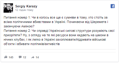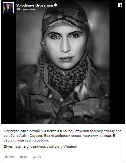 «Той, хто гине за Батьківщину - живе вічно. Помстимося», - написав він у Facebook.
