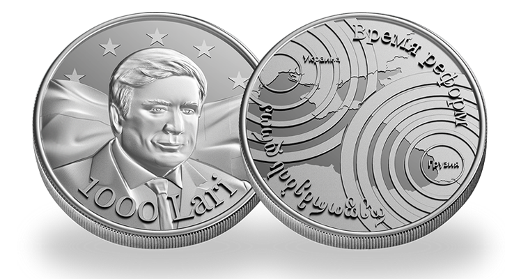 Сегодня в Украине и Грузии стартовали продажи уникального "подарка реформатора №1" - монеты Михеила Саакашвили номиналом в 1000 лари. Об этом сообщает сайт Реформатор.