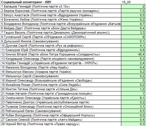 Результати екзит-полу по Києву на замовлення КВУ