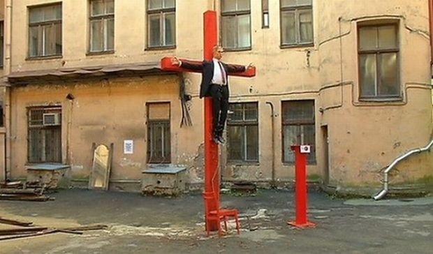 Нагадаємо, раніше повідомлялося, що в Ризі у дворі будівлі колишнього КДБ з'явилася статуя розп'ятого на хресті президента РФ Володимира Путіна.