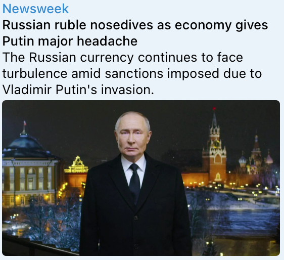 Російський рубль падає, економіка спричиняє головний біль для путіна, - Newsweek