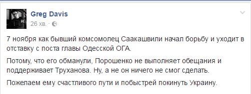 Голова Одеської обласної державної адміністрації Михайло Саакашвілі подає у відставку.