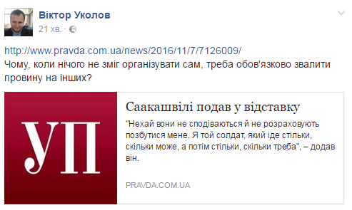 Він мотивував це тим, що президент підтримує два клани в Одесі й область здають не просто корупціонерам, а ворогам України.