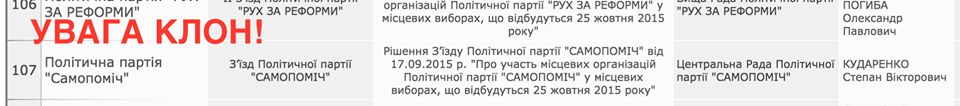 "- голова "партії" "Самопоміч" Степан Кударенко (колишній помічник та довірена особа на виборах 2013 року народного депутата від "Свободи" Юрія Левченка)