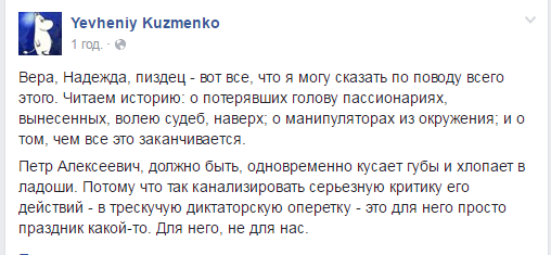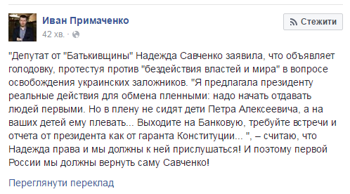 "Виходьте на Банкову, вимагайте зустрічі і звіту від президента України як від гаранта Конституції, прав і свобод людини, як від головнокомандувача, який посилав на смерть ваших дітей, а не своїх власних. Виходьте і не давайте забути про ваших рідних, тому що ціна життя людини вища тоді, коли про неї пам'ятають. І ви, матері окупованих Росією Луганської та Донецької областей України та українського Криму, – ви теж виходитьте до своїх злочинців, які представляють вашу "владу". Виходьте і вимагайте у них повернення ваших дітей, тому що їм на них точно так само плювати, як і нашій владі", – заявила вона.