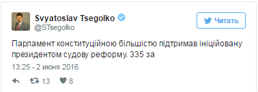 Верховная Рада затвердевшая изменения в Конституцию в части правосудия конституционным большинством.