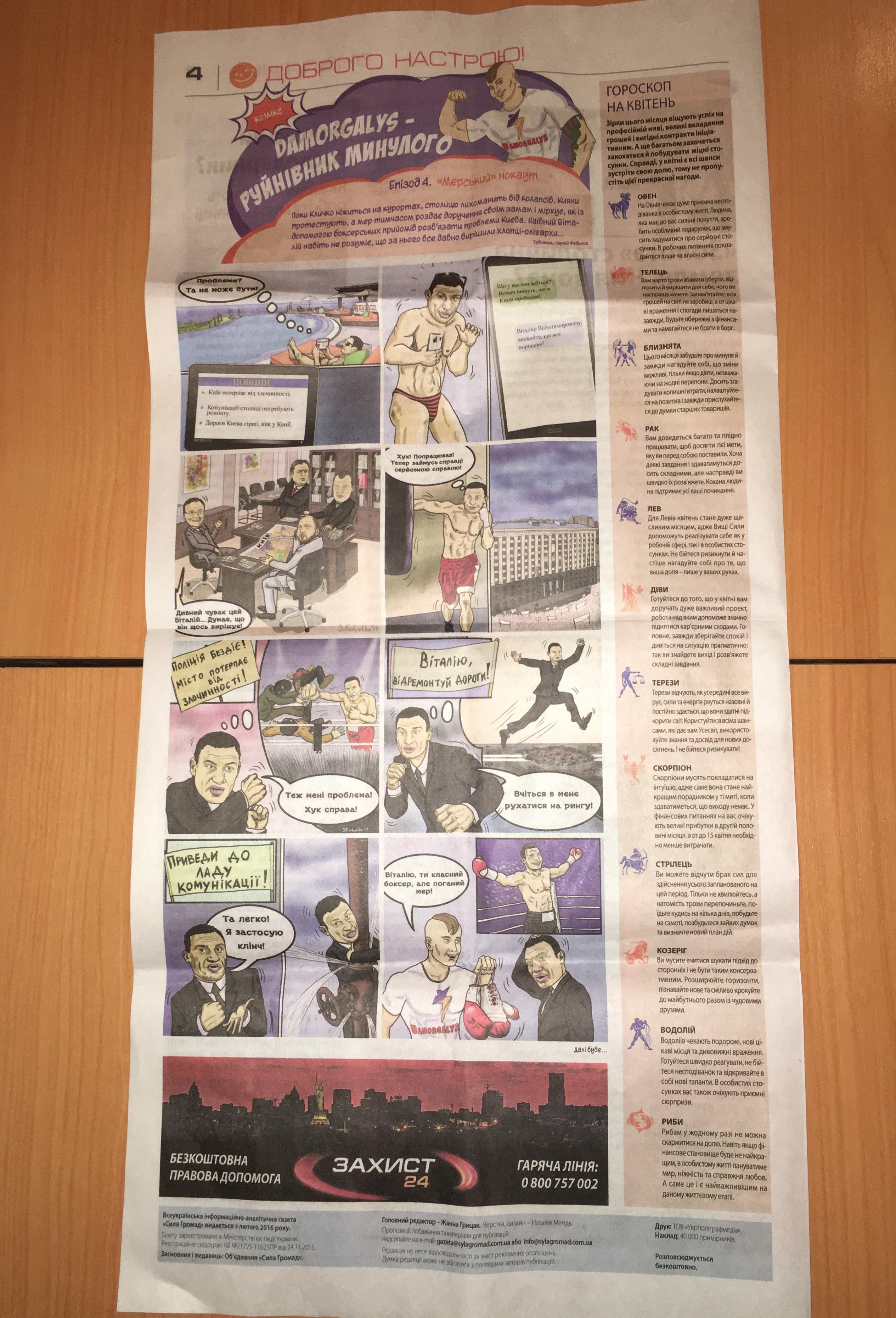 На останній сторінці "шедевру" показали комікс, з натяком на не зовсім мудрого мера Києва. Варто зазначити, що ідея змальовувати Віталія Кличка в коміксах теж не нова. На виборах до Київради 2015 року першими комікс намалювали в партії "Рух за реформи"