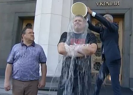 Украинские политики приняли участие в мировом благотворительном флешмобе – Ice Bucket Challenge. Олег Тягнибок и Богдан Бенюк получили вызов от нардепа Руслана Кошулинского и решили – поливать голову водой, это ж не пеплом посыпать, можно и попробовать,пишет Обозреватель