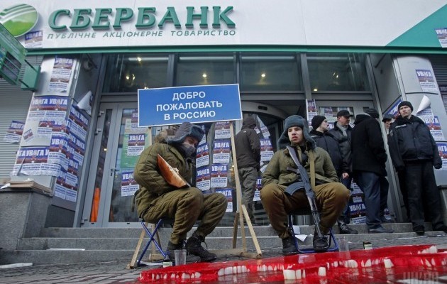 У Києві проводять "кривавий" пікет Сбербанку