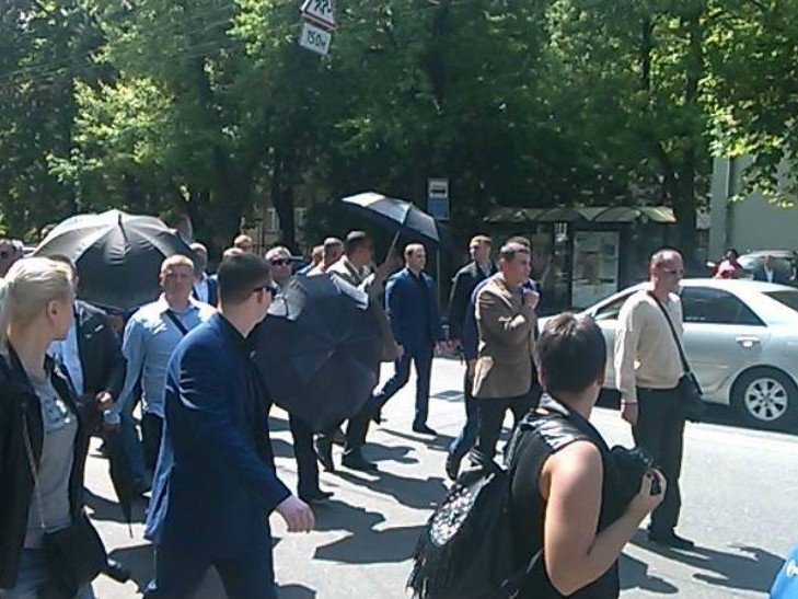 Зокрема, Бойко разом з купою охоронців йшов прямісінько по проїжджій частині дороги. Через це десятки автомобілів вимушені були чекати поки нардеп сяде у свій джип.