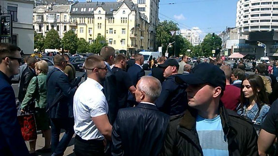 У Києві під крики "Смерть ворогам" закидали пластиковими пляшками голову "Опоблоку" Бойка.