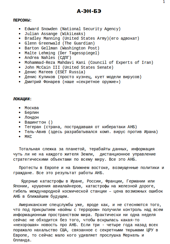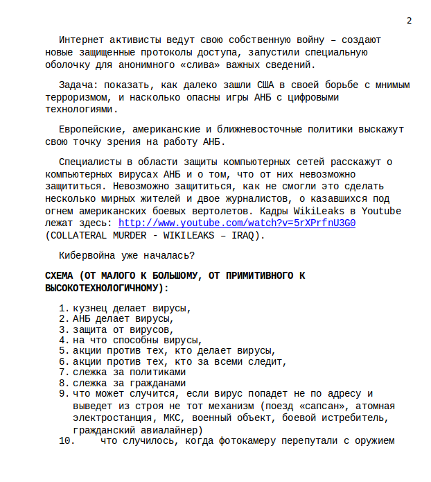 Волонтеры обратили внимание, что Зенин сотрудничал со скандальным телеканалом Russia Today, на котором работал над темой контроля АНБ (разведывательный орган США) за киберпространством. Этим проектом он занимался с ноября 2013 по январь 2014 года. В одном из писем обнаружился план-конспект проекта.