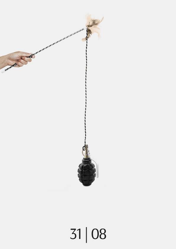 Митець відразу відреагував на криваві події під парламентом і зображив на плакаті іграшку, якою граються із котами і гранату.