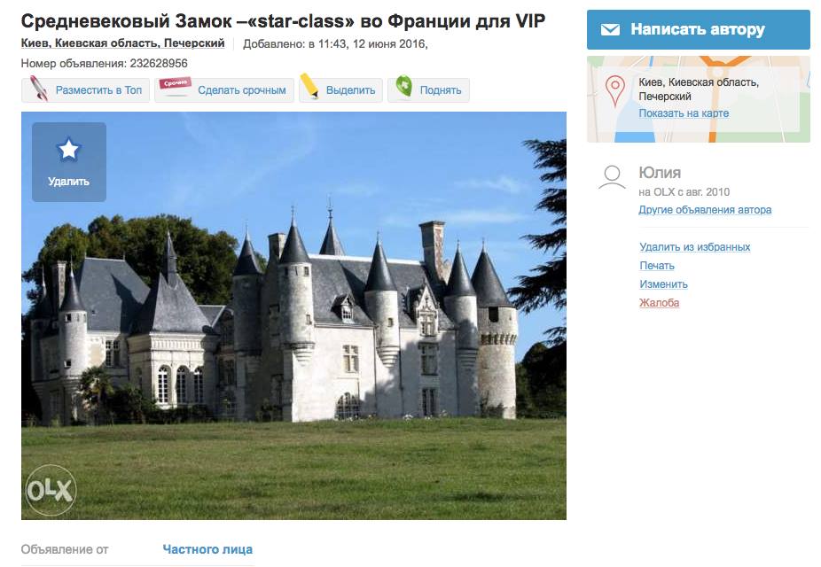 В Киеве распродают дворцы и самолеты через сайт бесплатных объявлений