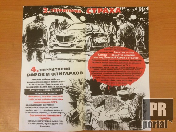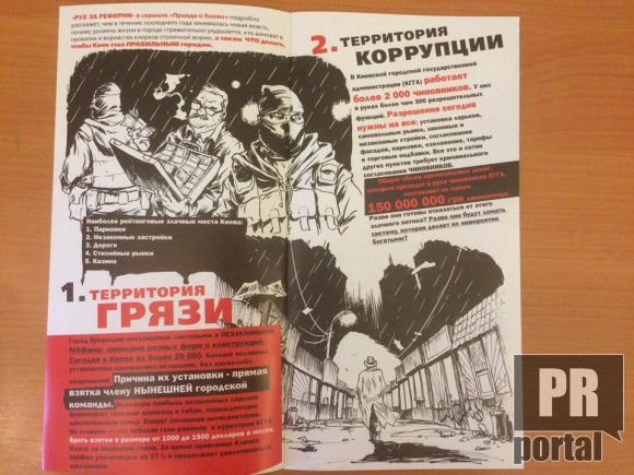 Піарники креативно підійшли до справи.Замість звичайних інформативних листівок вони створили цілий журнал-комікс під назвою "Правда о Киеве"