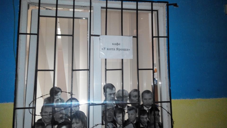 "Вчера мы прикалывались , поставили возле штаба два столика и назвали это , кафе у кота Яроша...Кот Ярош , пригласил патриотическую собаку Даню , ну и нас , заодно....Вечером , наши волонтеры привезли помощь от неравнодушных одесситов , которую мы собираем для АТО и погранцов и 28 бригады...