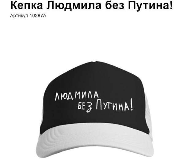 Товар из интернета с надписью "Людмила без Путина"