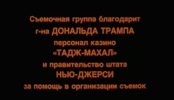 "Съемочная группа благодарит г-на Дональда Трампа, персонал казино "Тадж-Махал" и правительство штата Нью-Джерси за помощь в организации съемок", - говорится в титрах.