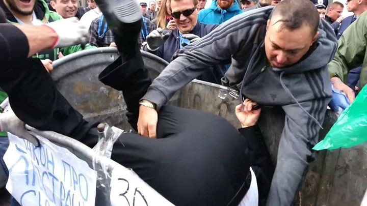 PRпортал напомнит,Правый Cектор затолкал одесского чиновника в мусорный бак