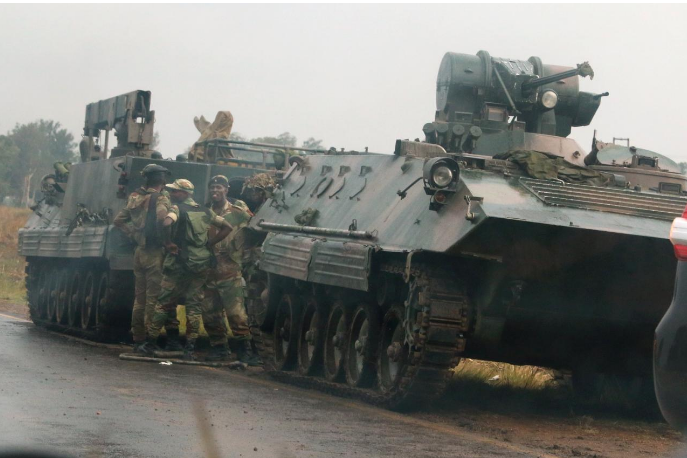 Всього через 24 години після того, як воєначальник пригрозив втрутитися, щоб припинити чистку своїх союзників президентом Мугабе, репортер Reuters побачив бронетранспортери на головних дорогах навколо столиці.