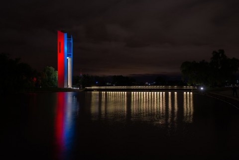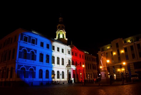 В знак солидарности на многих исторических здания в крупных городах мира была включена подсветкав цвет французского флага. Эйфелева башня в Париже, наоборот, погрузилась в темноту.