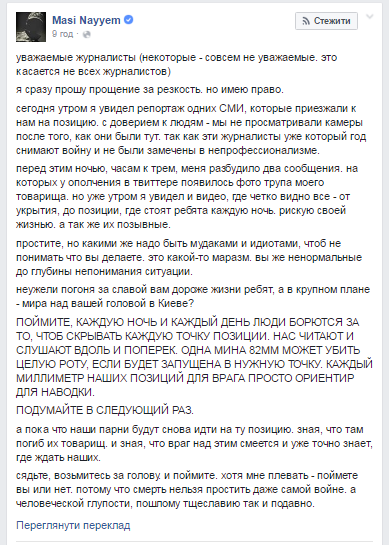 А російських журналістів взагалі не має бути у місцях розташування наших військ.