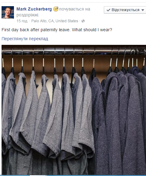 Перед выходом на работу гендиректор Facebook выложил на своей страничке фото гардероба, из которого он якобы не мог выбрать что одеть.