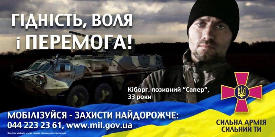 Міністр інформаційної політики Юрій Стець анонсував рекламну кампанії в рамках мобілізації, котра розпочалася сьогодні. На своїй фейсбук-сторінці він оприлюднив макет біллборду на якому зображено реальних "кіборгів", які захищають країну на сході.