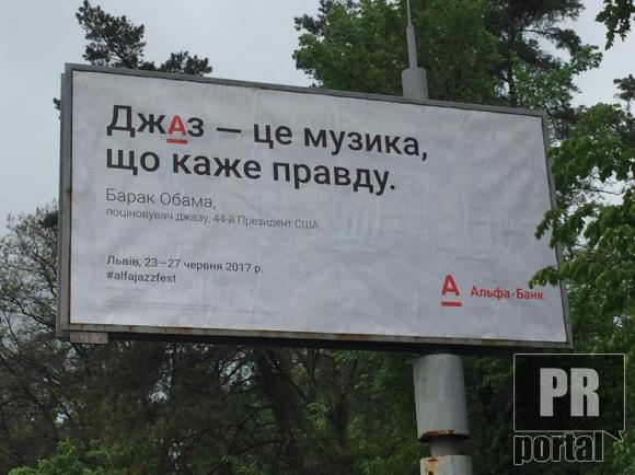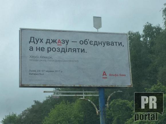 У цього роко на борді особливо підкреслено букву А у слові "джАз" і відкрито вказано, що організатор фестивалю є Альфа-Банк.