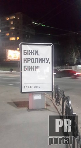 «Біжи, кролику, біжи!» - рекламні плакати з таким текстом з'явилися на вулицях Києва. Білборди із таким закликом спочатку сприйняли за звичайний фейк. Як відомо, в народі за прем'єр-міністром, окрім всіх інших, закріпилося прізвисько "Кролик Сєня". Також в цих словах обігрується назва відомої книги американського письменника Джона Апдайка "Кролику, біжи".
