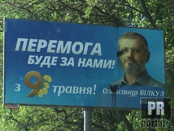 Втім, навіть у такому виконанні, рекламні щити Олександра Вілкула, наприклад, у Дніпрі були остріляні чорною фарбою