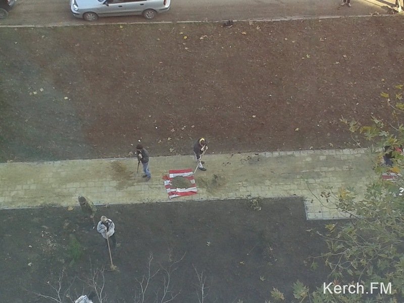 Утром 9 ноября на улице Ворошилова прошел субботник. Работники бюджетных организаций убирали прилегающую территорию.Вместо пакетов для мусора использовались несколько флагов Керчи.Подтверждающие фотографии прислал в редакцию Керчь.ФМ один из читатель.