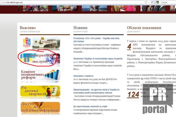 Сайт Депатраменту освіти і науки Кіровоградської облдержадміністрації рясніє граматичними помилками.