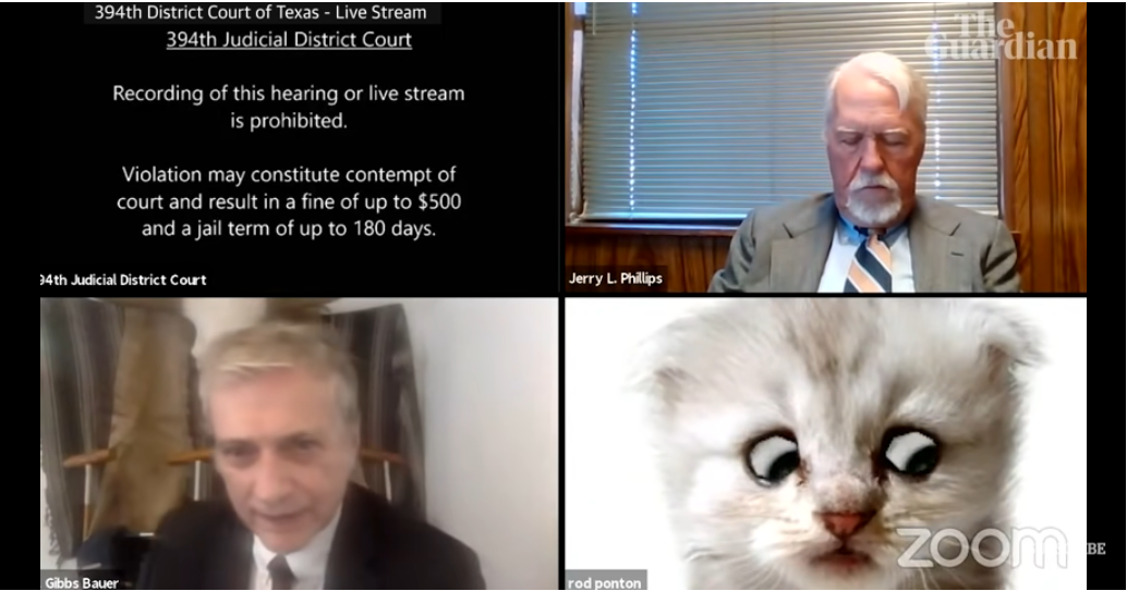 Американський прокурор Род Понтон не вимкнув фільтр в Zoom і включився в судове засідання під виглядом кота. Курйозний випадок стався 9 лютого під час розгляду справи про цивільний арешт в одному з судів Техасу, пише NYT.