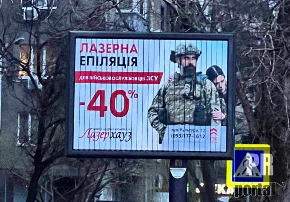 В колекцію зашкварного маркетингу додаємо шедевр від "Лазерхаус" - військових вони епілюють зі знижкою, цілих 40%!