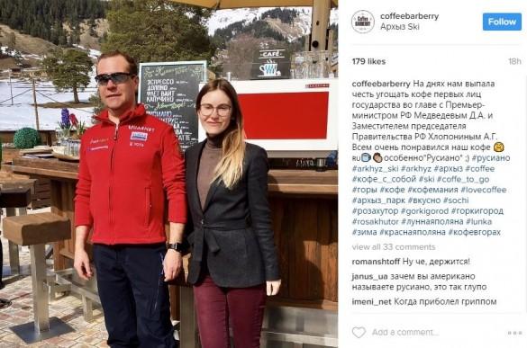 Раптом хворий прем'єр сплив у кав'ярні CofeeBarberry – фото російського урядовця заклад опублікував на своїй сторінці в Instagram.