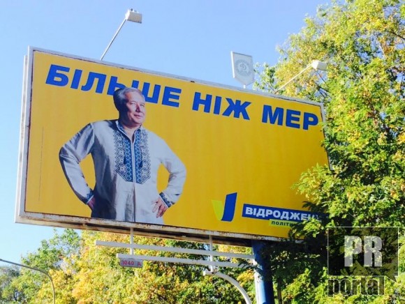 Білборд з гучним гаслом "Більше ніж мер" був помічений за межами столиці в Київський області.
