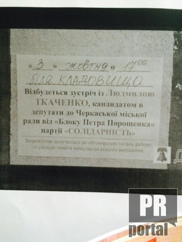 Кандидат в депутати до Черкаської міськради Людмила Ткаченко, наприклад, проводить зустрічі з виборцями біля кладовища.