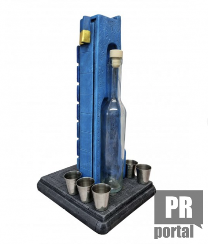 Українцям пропонують придбати подібну підставку для алкогольних напоїв за ціною від трохи більше тисячі до 1800 гривень. При продажу товару в комплектацію пляшка та стаканчики не входять.