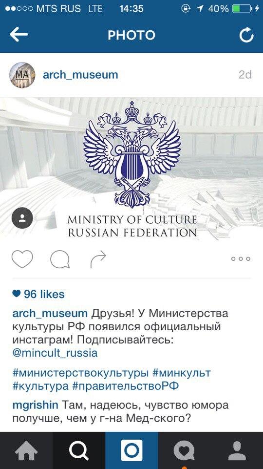 Министерство культуры РФ решило завлечь подписчиков в инстаграм телеграммой