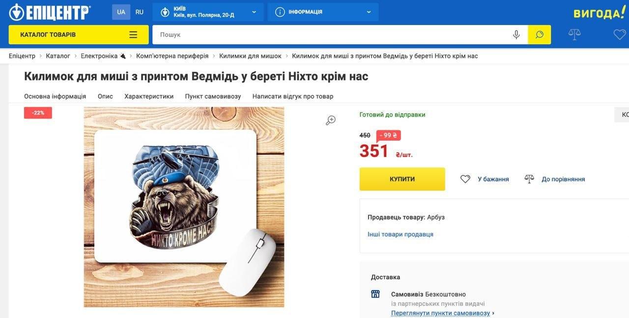 Після розголосу, Епіцентр видалив товари з символікою російських десантників