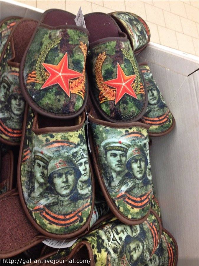 На России героев Великой отечественной войны стали изображать на тапках. Некоторые прользователи соцсетей назвали такое "творчество" "победобессией"