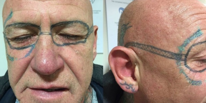 Иногда веселье попойки могут обернуться серьезными проблемами, как у британца из города Суонси, который после очередной гулянки в баре обнаружил на своем лице татуировку в виде очков