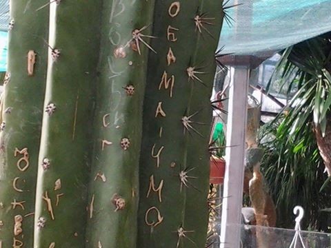 Російські туристи зіпсували столітні кактуси в Нікітському ботанічному саду в Ялті написами "Обама чмо" і "Москва".